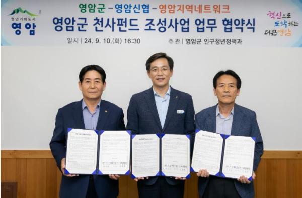 지난해 9월 천사펀드 조성과 운영을 위해 영암군과 영암신협, 사회적협동조합 영암지역네트워크가 업무협약을 맺었다.