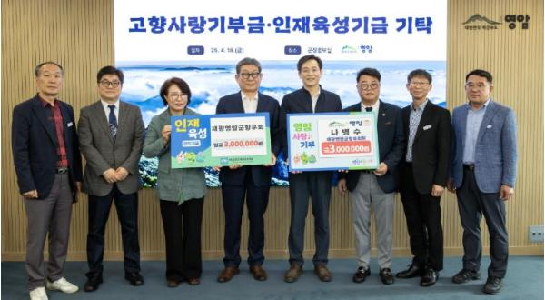 [중앙뉴스라인, 전은희기자] 재광영암군향우회가 18일 영암군청을 찾아 (재)영암군미래교육재단에 인재육성기금 200만원, 영암군에 고향사랑기부금 300만원을 기부했다.