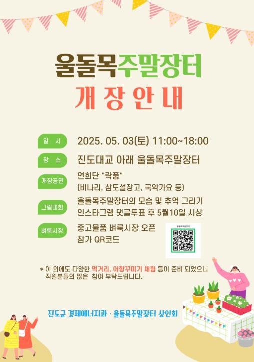 진도군 경제에너지과 관계자는 “울돌목 주말장터가 지역민과 관광객이 함께 어우러지는 명소로 자리 잡길 기대하며, 많은 관심과 참여를 바란다”라고 밝혔다.