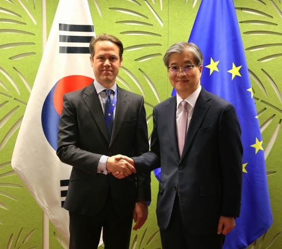 [중앙뉴스라인, 신기철기자] 우리나라와 유럽연합은 벨기에 브뤼셀에서 5월 7일'제21차 한-EU 공동위원회'를 김희상 외교부 경제외교조정관과 니클라스 크반스트룀(Niclas Kvanström) EU 대외관계청 아시아·태평양실장을 수석대표로 하여 개최했다.