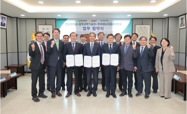 전남대학교는 8일 오후 2시, 대학본부 5층 접견실에서 광주과학기술원(GIST, 총장 임기철), 한국에너지공과대학교(KENTECH, 총장직무대행 박진호)와 ‘글로컬대학30을 활용한 지역 혁신 협력 업무협약’을 체결했다.