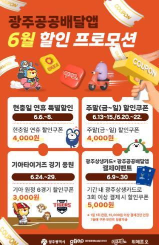 9일부터 30일까지 광주상생카드로 광주공공배달앱에서 1만5000원 이상, 3회 이상 결제(1일 1회 결제에 한함)한 소비자를 대상으로 7월에 5000원 할인쿠폰 또는 포인트를 지급할 계획이다.