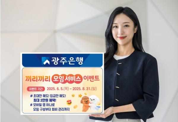 [중앙뉴스라인, 양병남기자] 광주은행은 6월 5일부터 오는 8월 31일까지 ‘끼리끼리 모임 서비스 이벤트’를 진행한다고 밝혔다.