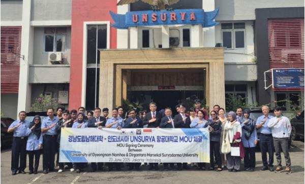 남해대학 노영식 총장 등 관계자는 23일 오전 9시 인도네시아 자카르타 할림 공군기지 내 운수르야 대학교(Universitas Dirgantara Marsekal Suryadarma Unsurya)를 방문해 유학생 파견 및 상호교류협력을 위한 MOU를 체결하고, 대학입학설명회를 개최했다.