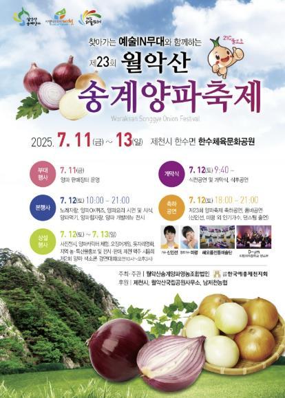 [중앙뉴스라인, 우제헌기자] 올해로 23번째를 맞이하는 월악산송계 양파축제가 오는 7월 11일부터 13일까지 3일간 한수면 송계리에 있는 한수체육문화공원 일원에서 열린다.