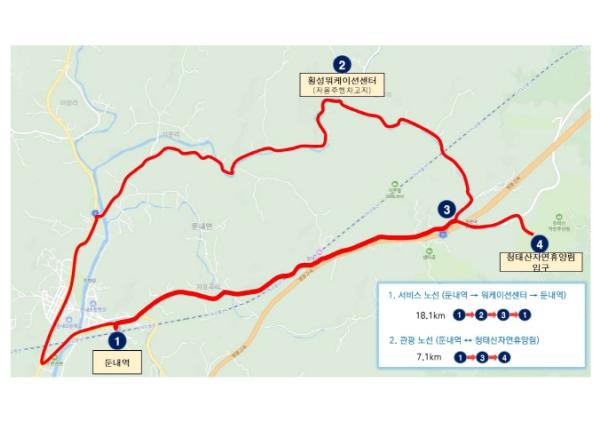 이번에 새롭게 지정된 시범운행지구는 '강원 횡성 스마트생태관광 자율주행자동차 시범운행지구'로 둔내면 일대가 해당되며, 지역거점 스마트시티 조성사업의 자율주행 차량 노선과 동일한 총 25.2km 구간이다. 운행 노선은 총 2개로, KTX 둔내역에서 횡성워케이션센터(신축부지), 삽교2리를 거쳐 KTX 둔내역으로 회귀하는 18.1km 구간과 KTX 둔내역에서 청태산 자연휴양림 입구까지 이어지는 7.1km 구간이다.