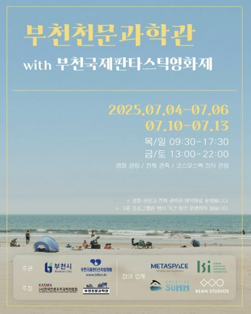 이종수 부천천문과학관 관장은 “이번 특별 상영회는 시민들이 과학을 더욱 가깝게 느끼는 계기가 될 것”이라며 “영화와 천체관측을 함께 즐기며 부천의 여름밤을 특별하게 보내길 바란다”고 말했다.