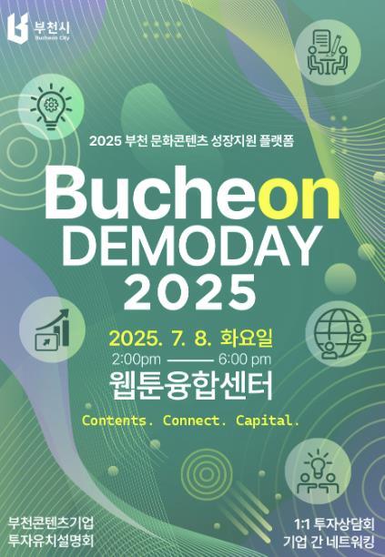 [중앙뉴스라인, 우제헌기자] 부천시는 7월 8일 오후 2시 웹툰융합센터에서 ‘2025 부천 콘텐츠기업 데모데이’를 개최한다. 이번 행사는 부천 문화콘텐츠 성장지원 플랫폼 사업의 일환으로, 성장 가능성이 높은 콘텐츠기업과 벤처투자사, 배급사, 유관기관을 연결하는 실질적인 업계간 교류 프로그램으로 마련됐다.