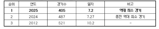 사상 최다 관중을 기록한 2024시즌에는 후반기가 진행중이던 7월 27일, 487경기만에 700만 관중을 달성한 바 있다. 올 시즌에는 이 기록을 82경기 단축하며 역대 최초로 전반기 중, 역대 최소 경기인 405경기만에 700만 관중을 넘어섰다. 또한, 지난 6월 17일(화) 600만 관중을 달성한 후 15일만, 55경기만에 700만 관중을 달성하며 역대 600만 관중에서 700만 관중 달성까지의 최소 일수와 최소 경기수 기록도 각각 경신했다.