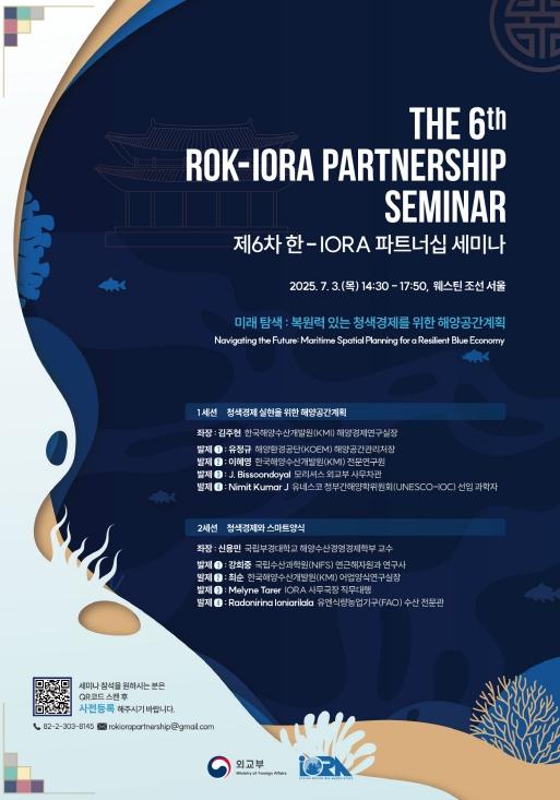[중앙뉴스라인, 신기철기자] 외교부는 7월 3일 서울에서 ‘제6차 한-환인도양연합(Indian Ocean Rim Association, 이하 IORA) 파트너십 세미나’를 개최했다.