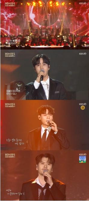무대에 오른 라포엠은 앞서 언급했던 ‘내레이션’ 필살기로 단숨에 분위기를 사로잡았다. 중저음의 내레이션이 강렬한 인상을 남긴 가운데 라포엠은 단단한 목소리와 하모니로 장엄하고 웅장한 분위기를 연출했고, 콜링콰이어의 퍼포먼스가 더해져 완성도 높은 무대를 선사했다.