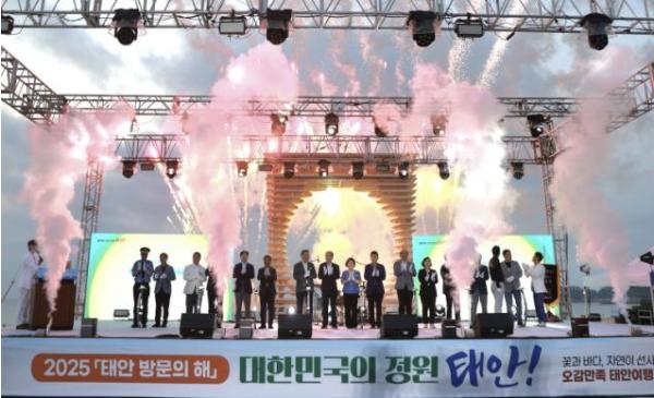태안의 대표 해수욕장으로 손꼽히는 만리포에서는 5일 ‘개장 70주년 기념 2025 만리포 해수욕장 개장식’이 열려 유명가수의 축하공연과 ‘드론 라이팅쇼’ 등이 펼쳐졌으며, 당초 예상치인 1천 명을 훌쩍 넘는 5천여 명이 현장을 찾아 인산인해를 이뤘다.