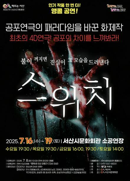 대학로 스테디셀러인 ‘스위치’는 지난 2023년 서산시 개최 당시 티켓 예매 시작 3분 만에 매진을 기록한 인기 작품이다.
