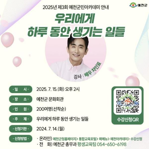 예천군, 작가 차인표 초청 '2025년 제3회 예천군민아카데미' 개최