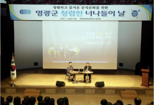 [중앙뉴스라인, 우제헌기자] 영광군은 지난 7월 4일 영광문화예술의전당 소공연장에서 공직자 170여명이 참여한 가운데 ‘2025년 청렴한 너나들이 날’행사를 개최하여 청렴한 공직문화 확립을 위한 뜻깊은 시간을 가졌다.