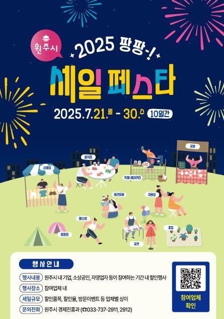 이어 원주시는 지역경제 활성화를 위한 또 다른 방안으로 ‘원주시 팡팡 세일 페스타’를 오는 7월 21일부터 30일까지 10일간 개최한다.