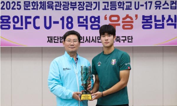 [중앙뉴스라인, 우제헌기자] 용인특례시는 7일 오후 용인미르스타디움에 있는 용인시시민프로축구단 회의실에서 이상일 시장이 참석한 가운데 ‘2025 문화체육관광부장관기 고등학교 U-17 유스컵’ 우승컵 봉납식을 개최했다.