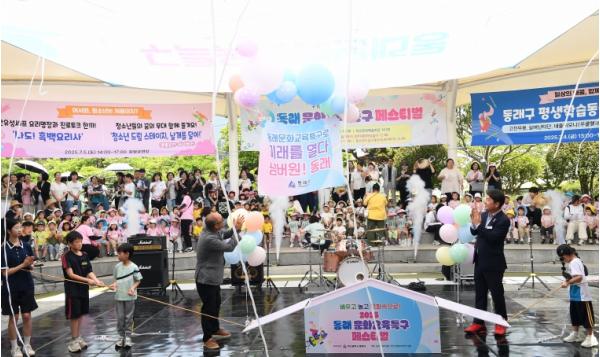 올해 동래문화교육특구 페스티벌은 당초 5월 개최 예정이었으나, 제21대 대통령 선거로 인해 7월로 연기됐다. 동래구는 예년보다 빨리 찾아온 무더위를 이겨내고자 그늘막 및 이동식 에어컨 설치를 비롯해 얼음 생수, 부채 등을 준비해 폭염에도 안전하게 즐길 수 있도록 했다. 특히 시원한 물총 게임과 유아워터페달보트 체험형 프로그램을 배치해 아이들에게 물놀이의 즐거움을 제공했다.
