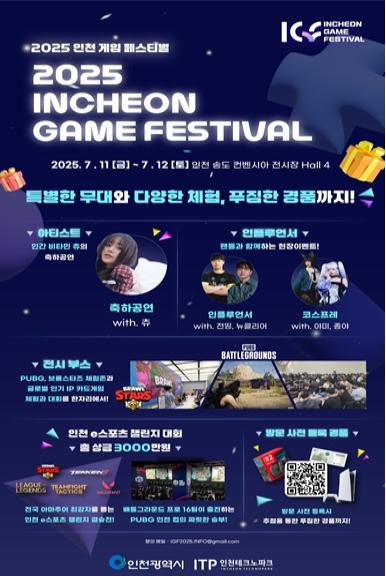 [중앙뉴스라인, 우제헌기자] 인천광역시는 인천시가 주최하고 인천테크노파크가 주관하는 ‘2025 인천 게임 페스티벌’을 오는 7월 11일 개최한다고 밝혔다.