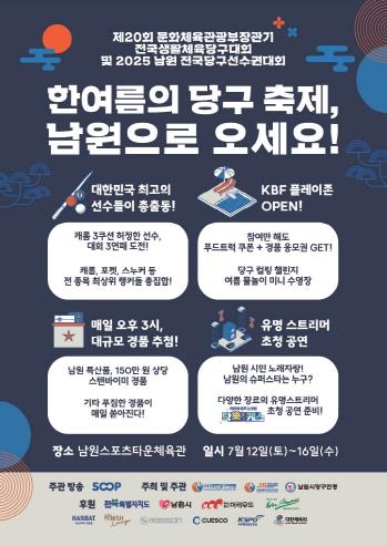 [중앙뉴스라인, 우제헌기자] 스포츠 명품도시 남원시에서 『제20회 문화체육관광부장관기 전국생활체육당구대회 및 2025 남원 전국당구선수권대회』가 7월 12일부터 7월 16일까지 5일간 국내 최정상급 당구선수들과 생활체육 동호인들이 참가한 가운데 남원종합스포츠타운 실내체육관에서 개최될 예정이다.
