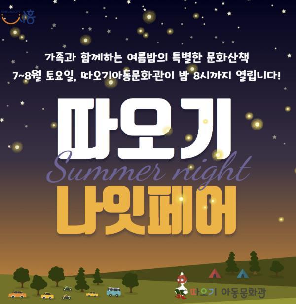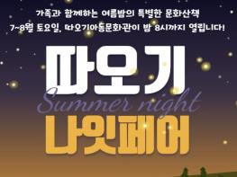 [중앙뉴스라인, 우제헌기자] 시흥시의 대표적인 아동문화공간인 따오기아동문화관이 여름철을 맞아 ‘따오기 나잇페어’를 7월 12일부터 운영한다.