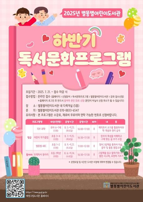 계양구 별똥별어린이도서관, ‘2025년 하반기 독서문화 프로그램’ 운영