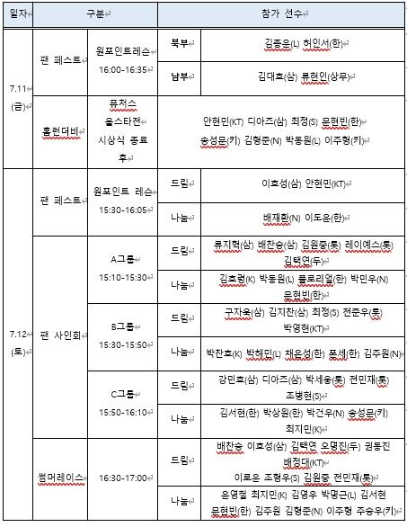 팬 페스트존의 원포인트 레슨 및 다양한 팬 참여 프로그램도 11일(금)과 동일하게 진행된다. 특히 12일(토) 오후 3시 30분부터 4시까지 한밭야구장 내 팬 페스트존의 배팅존과 피칭존에서는 삼성 이호성, KT 안현민, 한화 이도윤, NC 배재환 등 올스타 선수들이 참여해 실제 그라운드 위에서 팬들에게 직접 타격과 투구에 대해 알려줄 예정이다.