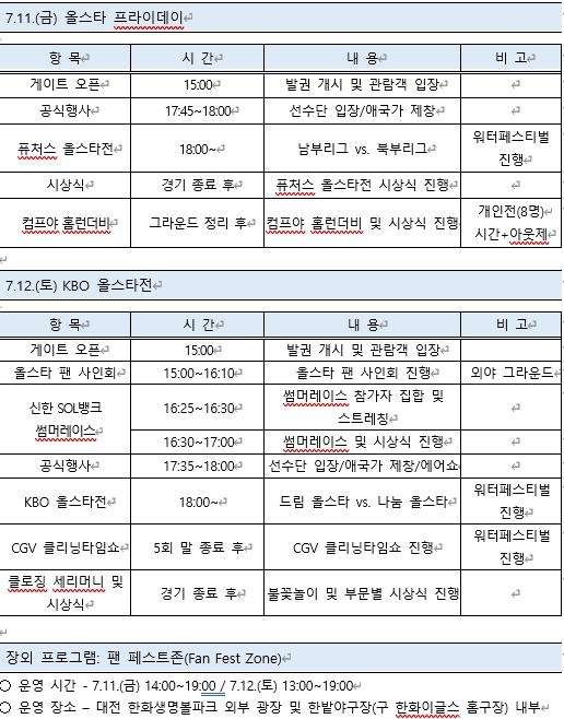 [중앙뉴스라인, 우제헌기자] KBO는 대전 한화생명볼파크에서 11일(금) 개최되는 올스타 프라이데이와 12일(토) 펼쳐지는 KBO 리그 별들의 축제 ‘2025 신한 SOL뱅크 KBO 올스타전’ 행사 계획을 확정했다.