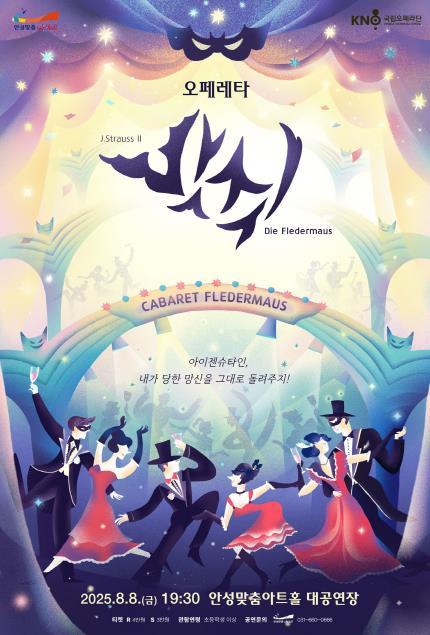 [중앙뉴스라인, 우제헌기자] 안성맞춤아트홀은 오는 8월 8일 오후 7시 30분, 여름밤을 화려하게 수놓을 오페레타 '박쥐' 공연을 대공연장에서 개최한다. 오페라를 처음 접하는 관객도 부담 없이 즐길 수 있도록 기획된 이번 공연은 유쾌한 스토리와 생생한 왈츠 선율, 감각적인 연출이 어우러진 무대이다.