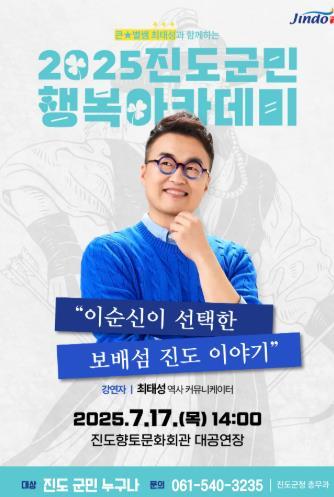 한편 ‘진도 군민행복 아카데미’는 사전 신청 없이 누구나 입장 가능하며, 11월까지 매월 다양한 분야의 저명인사를 초청해 강연을 진행할 계획이다.