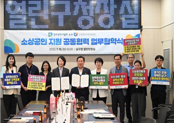 16일 남구에 따르면 골목 상권 및 지역경제 활성화를 위한 남구청과 소진공 광주전남제주지역본부간 업무협약이 15일 오후 구청 1층 열린 민원실에서 열렸다.