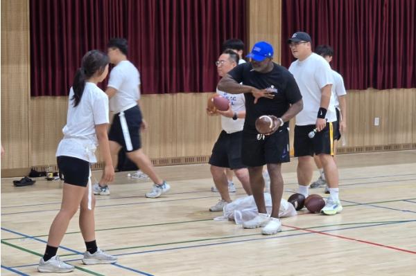 군위군 중, 고등학교 체육관에서 실시된 이번 클리닉은 전국 초·중·고 체육교사, 유소년 지도자, 플래그풋볼 코치 등 약 100명이 참석한 가운데, NFL(National Football League)의 명문 구단인 Los Angeles Rams(로스앤젤레스 램스) 소속 전문 코치들이 직접 강사로 나선다. 참가자들은 최신 훈련 기법과 미국식 지도법, 체계적인 팀 운영 전략 등 NFL에서 인정받는 선진 기술과 노하우를 배워 국내 플래그풋볼 지도자의 전문성을 높일 예정이다.