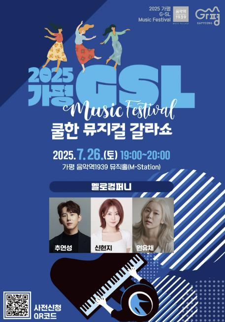 이번 공연은 오는 26일 오후 7시 가평 음악역1939 1층 뮤직홀에서 열리며, 뮤지컬 전문 공연팀 멜로컴퍼니(추연성, 신현지, 원유채)가 출연해 귀에 익은 음악들로 무대를 꾸민다. 감미로운 선율과 풍성한 퍼포먼스가 어우러진 뮤지컬 갈라쇼는 올해 G-SL 네 번째 무대로, 가평의 여름밤을 시원하게 식혀줄 전망이다.