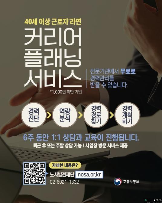 [중앙뉴스라인, 양병남기자] 40세 이상 근로자*라면 커리어 플래닝 서비스