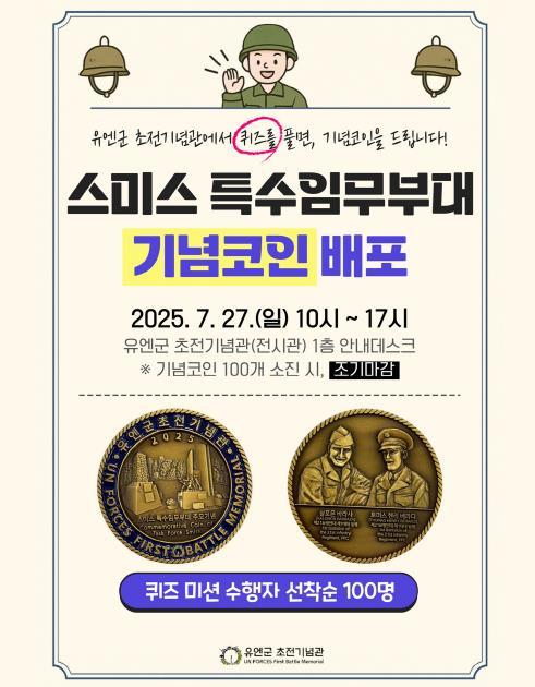 기념관 관계자는 “유엔군 참전의 날은 이 땅의 자유와 평화를 위해 헌신한 유엔군의 희생을 기억하고 기리는 뜻깊은 날”이라며, “이번 기념코인 배포 행사가 스미스 부대와 참전용사들에 대한 감사와 존경의 마음을 되새기는 계기가 되기를 바란다”고 전했다.
