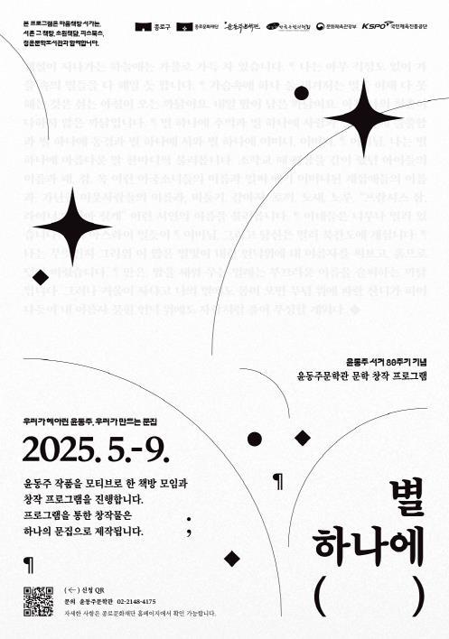한편 종로구는 2025 윤동주문학제 공모형 프로그램 참여자를 모집한다. 시인의 작품과 생애, 광복을 주제로 한 창작곡과 3분 이내의 영상 등 참신한 콘텐츠를 발굴하려는 취지다.