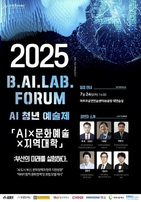 [중앙뉴스라인, 우제헌기자] 부산시 금정구 금정문화재단은 오는 7월 24일 오후 2시, 아르코공연연습센터@금정 대연습실에서‘2025 B.AI.LAB. FORUM’을 개최한다고 밝혔다.
