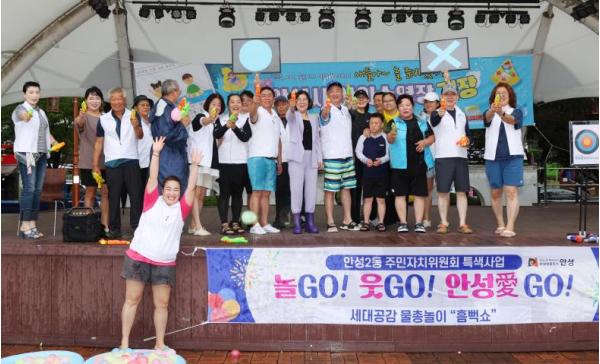 [중앙뉴스라인, 우제헌기자] 안성2동 주민자치위원회는 지난 7월 19일 내혜홀광장 야외무대에서 ‘놀GO, 웃GO, 안성愛 GO’라는 슬로건 아래 어린이들과 함께하는 여름 물놀이 행사를 개최했다.