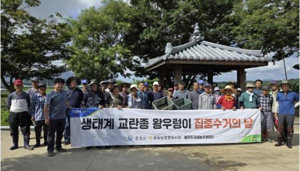 이번 행사에는 지역 농업인, 홍동농협 및 풀무주곡영농조합법인 친환경벼 작목반 등 약 40여 명이 참여했으며, 논과 수로 주변에서 왕우렁이를 직접 수거하고 관리하는 시간을 가졌다. 이날 수거된 왕우렁이 2.3톤은 관내 우렁이농장에 전달되어 처리될 예정이다.