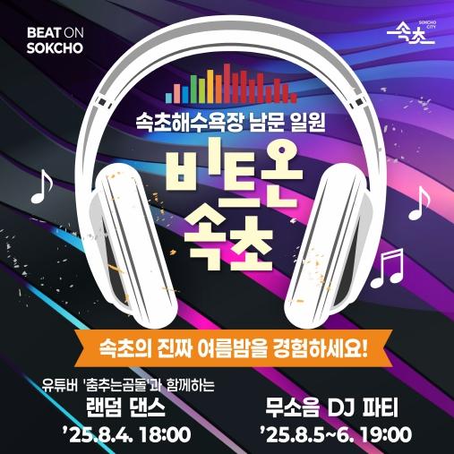 [중앙뉴스라인, 우제헌기자] 속초시는 여름 성수기를 맞아 새로운 형태의 참여형 야간축제 ‘비트 온(BEAT ON) 속초’를 오는 8월 4일부터 6일까지 3일간 속초해수욕장 남문 일원에서 개최한다.