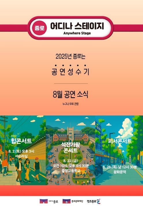 8월 서순라길, 중앙고등학교, 광화문역 일대에서 청년층과 학생들, 직장인 위한 공연 개최