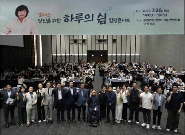 [중앙뉴스라인, 우제헌기자] 경기도는 지난 26일 수원컨벤션센터에서 희귀질환자와 가족 300여 명이 함께한 가운데 ‘빛나는 당신을 위한 하루의 쉼’ 힐링콘서트를 개최했다.