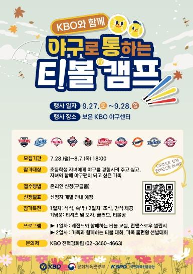 [중앙뉴스라인, 우제헌기자] KBO는 ‘2025 제2차 야구로 통하는 티볼캠프’에 참가할 가족을 오늘(28일)부터 8월 7일(목) 오후 6시까지 모집한다.