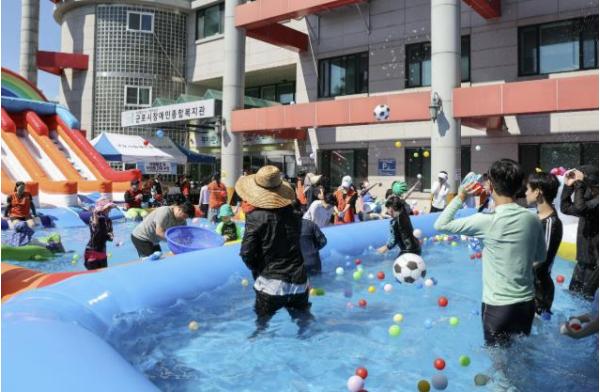 사전 신청을 통해 선정된 장애인 및 시민 200여 명이 참여한 이날 축제는 물놀이풀장과 슬라이드에서 즐기는 물놀이 행사뿐만 아니라 스티커 타투 체험, 물속 보물찾기 등 다양한 프로그램을 운영하며 참여자들의 높은 호응을 얻었다.