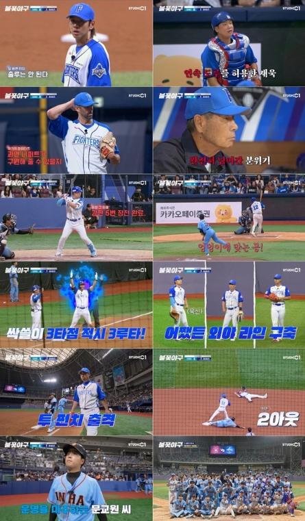 어제(28일) 오후 8시 스튜디오C1 공식 유튜브 채널을 통해 공개된 야구 예능 프로그램 ‘불꽃야구’ 13화에서 불꽃 파이터즈는 부활한 캡틴 박용택과 ‘천재 유격수’ 김재호의 명품 수비를 앞세워 인하대를 7:6으로 꺾었다.