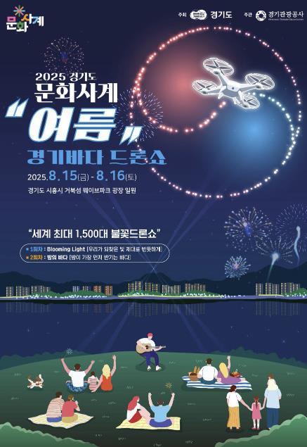 [중앙뉴스라인, 우제헌기자] 경기도와 경기관광공사는 오는 8월 15일부터 16일까지, 시흥 거북섬 웨이브파크 광장 일원에서 사계절 테마형 문화예술축제 ‘경기도 문화사계’의 여름 행사로 '경기바다 드론쇼'를 광복 80주년 기념 문화행사와 함께 개최한다고 29일 밝혔다.