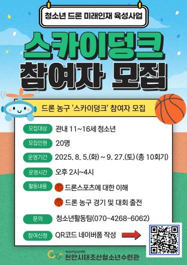 천안시태조산청소년수련관, 드론 농구 ‘스카이덩크’ 참여자 모집