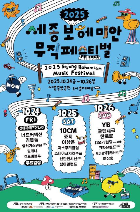 [중앙뉴스라인, 우제헌기자] 세종시문화관광재단은 오는 10월 24일부터 26일까지, 세종중앙공원 도시축제마당에서‘2025 세종보헤미안뮤직페스티벌’을 개최한다.