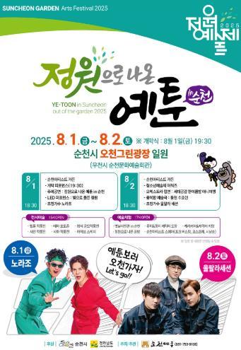 [중앙뉴스라인, 우제헌기자] 순천시는 오는 8월 1일부터 2일까지 이틀간 오천그린광장에서 '정원으로 나온 예툰 in 순천'을 주제로 ‘2025 정원예술제’를 순천예총 주관으로 개최한다고 밝혔다.