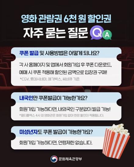문화체육관광부, 영화관람권 6천 원 할인권 자주 묻는 질문 Q&A